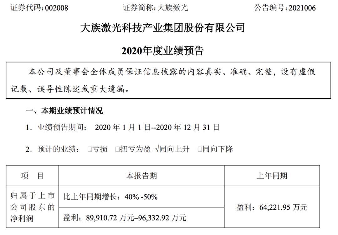 4、报告期内出售深圳市大族机器人有限公司部分股权,确认投资收益约1.24亿元;由于疫情后期国内口罩产能过剩,公司部分口罩自动化生产线客户临时取消合同导致公司前期备货积压,公司对口罩自动化生产线库存进行了专项计提减值准备约1.30亿元;终止出售AIC公司股权暨确认投资损失及计提资产减值准备,公司确认长期股权投资损失1.59亿元,计提长期股权投资减值准备1.05亿元;