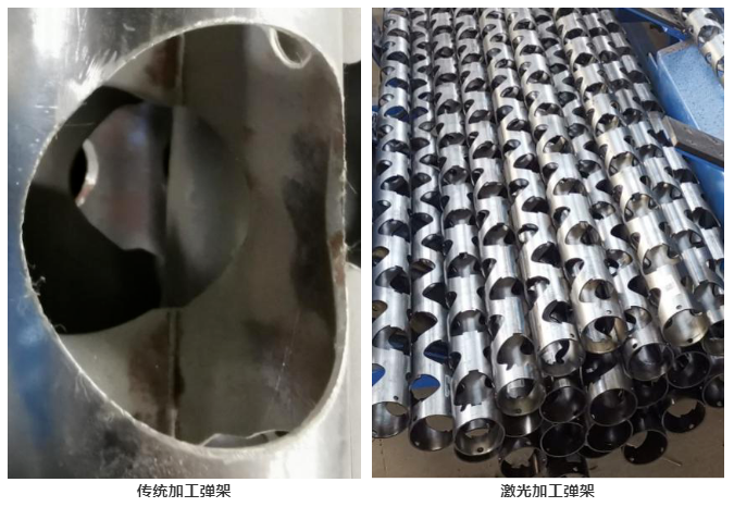 通过对激光器功率、气流、系统及NC程序优化,生产线实现对弹架高效率、高质量断面切割及严格的毛刺和挂渣控制。