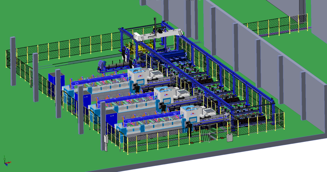 激光切管柔性生产线(切管FMS)将库房至激光加工车间之间建立一条自动传输线,实现成捆原材料及成品往返传输。