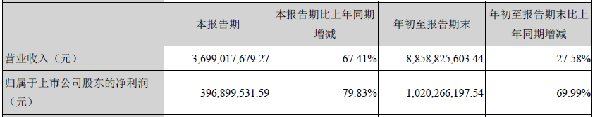 400-666-400010月25日晚,江南平台科技产业集团股份有限公司(以下简称“江南平台”或“公司”)发布了2020年第三季度报告。报告显示,江南平台第三季度营收36.99亿元,同比增长67.41% ;归属于上市公司股东的净利润3.97亿元,同比增长79.83%。
