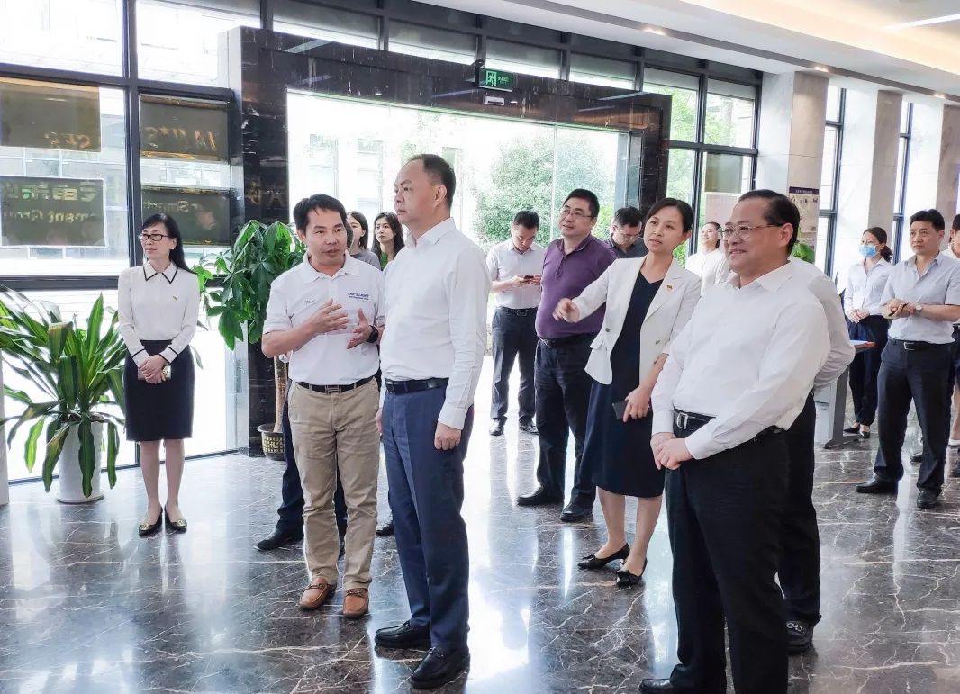 长沙市人民政府副市长邱继兴、雨花区委书记张敏、雨花区区长刘素月、雨花经开区党工委书记郭四军、雨花经开区管委会主任曾红鹰等领导陪同调研,江南平台智能装备集团总经理、湖南大族智能装备有限公司董事长陈焱热情接待郑建新代理市长一行。