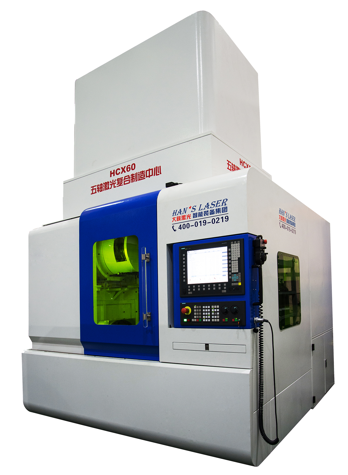 送粉式五轴激光增减材复合制造中心HCX60,配置了3D打印头及ATC自动换刀刀库,可实现零件的增材、减材功能,3D打印与五轴机加工完美结合并一次加工成形,加工幅面φ500×500mm,可实现发动机叶片的精密制造。该系统将激光3D打印系统和五轴加工机床进行有机结合,克服了单一3D打印系统的局限性,拓宽了五轴加工机床使用空间,实现了从创意到产品的直接转换。