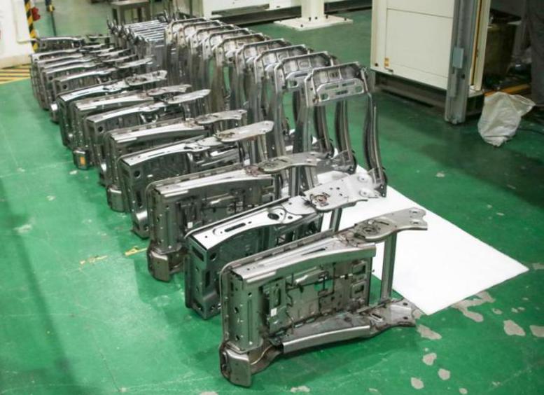 7.夹具设计精准、先进:在夹具不同部位设置有吹气结构,以保障焊点位置全覆盖;夹具通过快速定位位销进行定位,拆装方便;夹具设计均考虑防错、防呆和防漏功能,均安装吊环螺钉,夹具可以通过行吊进行更换;关键区域会增加防飞溅装置;夹具设计所有焊接零件得到有效的压紧,保证焊接接头间隙小于0.2mm,压紧时不破坏零件定位位置和几何形状以及表面质量。(每个压块的压紧力不超过80N);夹具会给客户提供完整的三坐标尺寸精度报告,夹具装配后定位元素精度小于0.08mm;设有粗定位和粗导向,方便快速精准的装件。