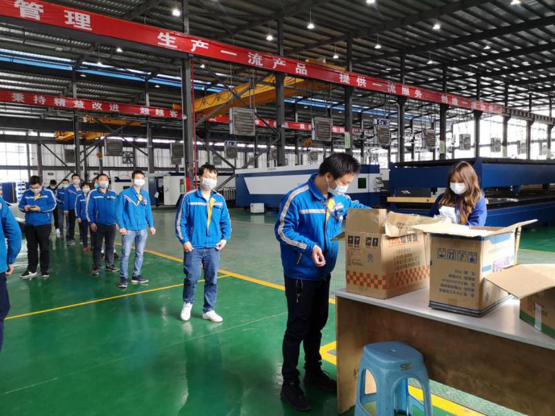 江南平台智能装备集团管理层毫不懈怠、科学部署防控工作与经营战略,创新工作方式,全力支持防控的企业,为徐工集团、中集集团、宇通客车等工程机械、特种车、医疗器械行业企业客户,以及口罩机生产企业,提供光纤激光切割机、激光切管机、激光焊接系统与自动化生产线等高端激光装备系统解决方案与增值服务。江南平台紧密关注疫情防控,针对急缺的口罩等情况,组织研制N95口罩生产线,基于先进的焊接与自动化技术,实现稳定生产、快速交付,确保物资供应。