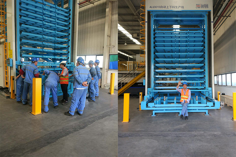 项目的安装过程困难重重,由于客户提供给研发的尺寸有误,产线料库立起以后料库梯子被车间管道挡住无法上人,我方工程师决定要把梯子改造到别外一边,重新配孔,切割梯子和料库顶上护栏进出口现场切割和焊接比较困难,又加上是高空作业,导致整个安装过程真是难上加难。我方项目负责工程师刘春华、何亮、李付清、赵爽、胡科、王晓烽、胡智明、宴嘉、张道庆在重重的困难面前,严格根据要求一丝不苟的完成安装工作,用自己的专业技术解决了标准机防尘罩变径接头尺寸不对、产线护栏现场组装等问题。