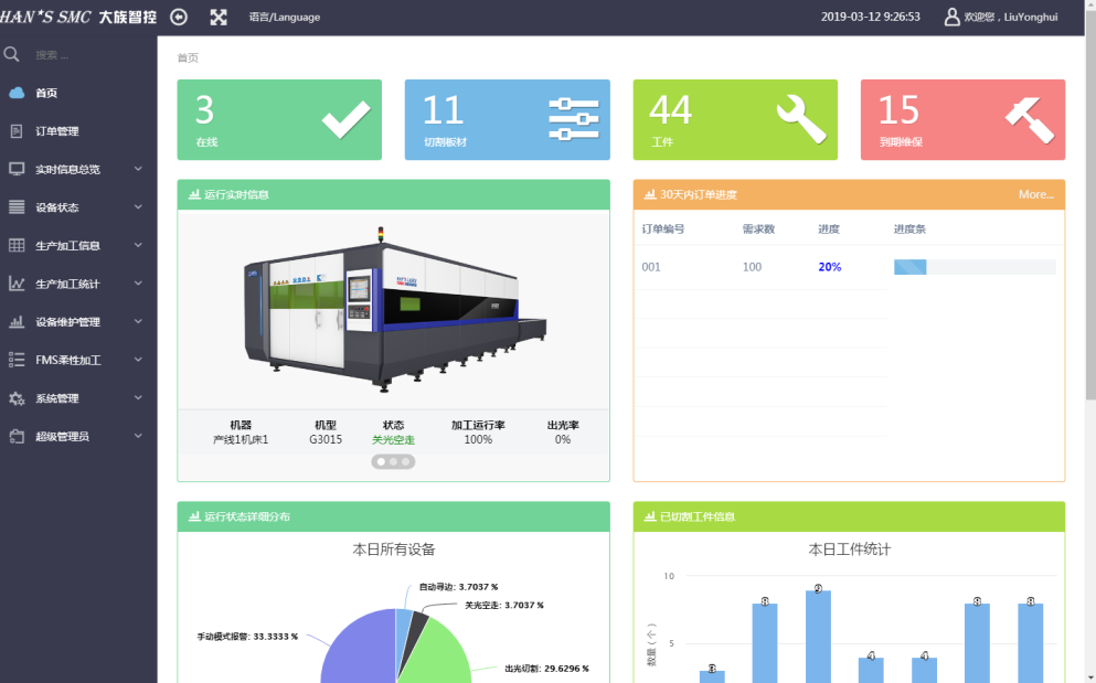 江南平台智能装备集团Han’s MeSys激光设备信息管理系统,一套面向制造企业车间管理层的生产信息化管理系统。可以为企业提供包括订单进度实时监控、设备状态管理、生产数据管理、零件损坏维保管理和FMS自动生产线监控等管理模块,为企业打造一个全面化信息管理系统。