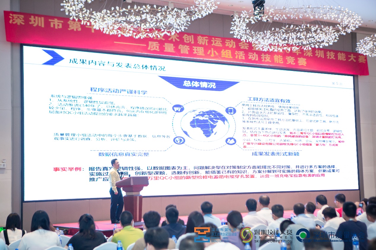 (上图)深圳市科学技术协会党组成员孙楠作了热情洋溢的讲演,希望继续联合推进QC小组活动,并对我市企事业单位开展QC小组活动给予了肯定,结合QC标准,创新小组活动推进、成果交流分享,弘扬精益求精的工匠精神,积极开展质量改进活动,不断夯实高质量发展的群众基础。