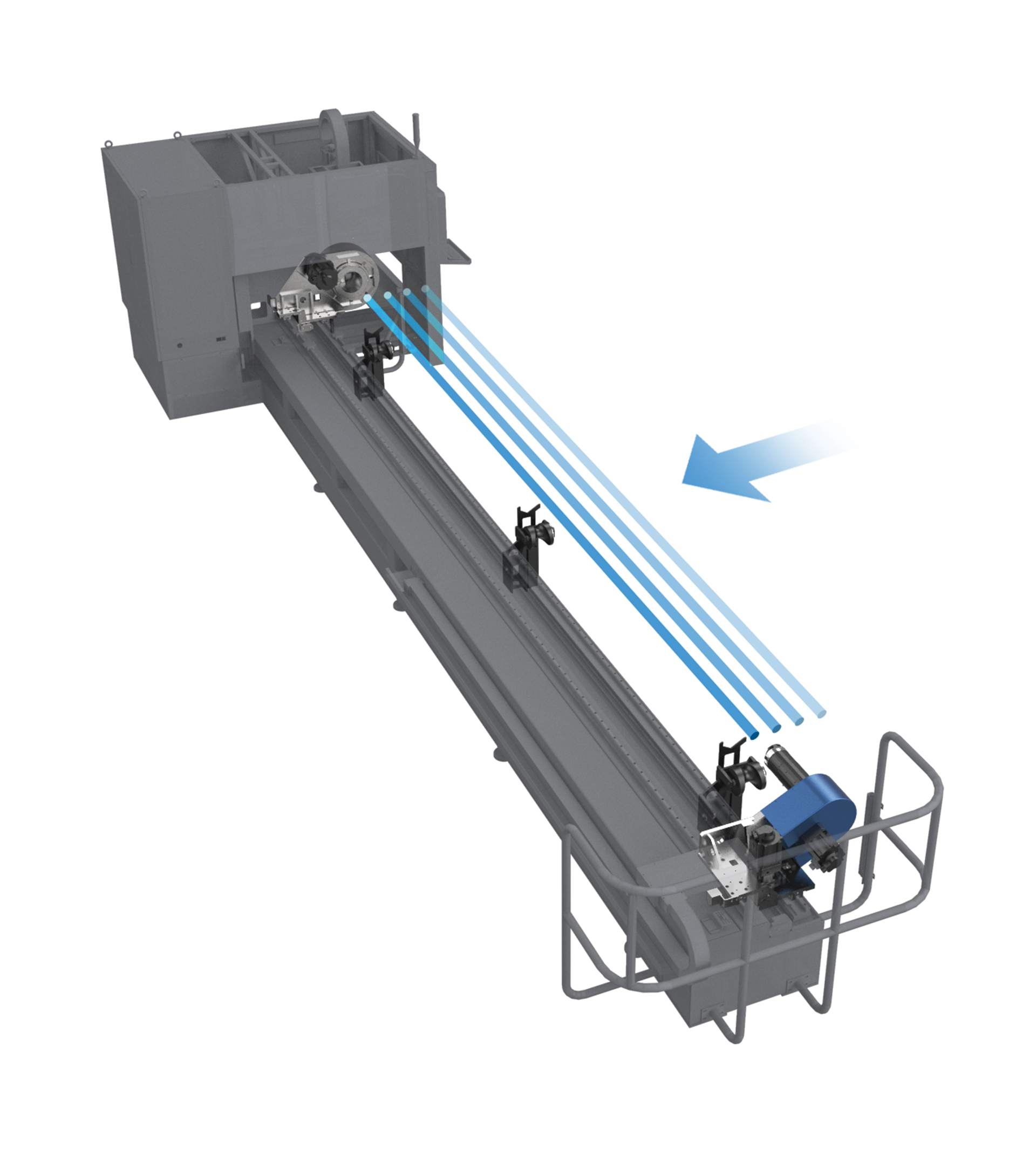 后卡盘可配合伸入主卡盘,有效缩短后卡盘与切割头的距离,